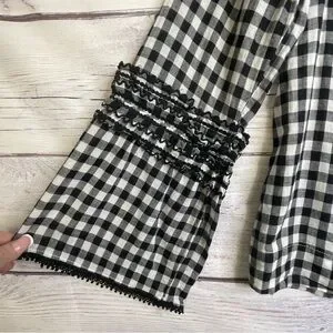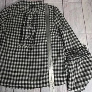 J Crew Gingham Blouse Size 10 Bell Sleeve Ruffles