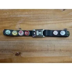 Stylish black belt with unique colorful accents. Features vibrant button details. Perfect for adding flair to any outfit.