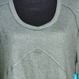 Fringe Studios Green Cotton Poly Long Sleeve Deep Side Slit High Low Waffle Knit Top Size M...Another Stunning Color and Fabric top....You Will Love the Feel and the Way this top is Put Together is a Piece of art....Brand New with Tags.....