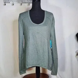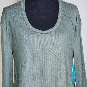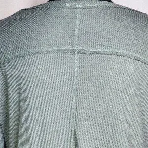 Fringe Studios Green Cotton Poly LS Deep Side Slit High Low Waffle Knit Top Sz M