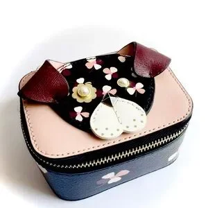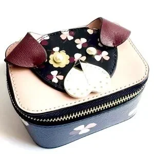 KATE SPADE Floral Cherrywood Puppy Dog Travel Jewelry Box
