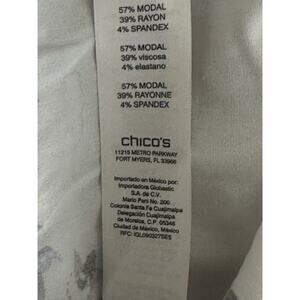 The Chico Women's Long Sleeve Blouse in size 0 features a stylish paisley pattern on a multicolor background, making it suitable for travel, casual outings, or business meetings. This pullover blouse has a collared neckline and classic/fitted sleeves, providing a regular fit for comfort. With its machine washable care instructions, this blouse is convenient for everyday wear during the summer, fall, and spring seasons. Made by Chico's, this tunic style blouse adds a touch of elegance to any wardrobe. Please view all pics carefully and let me know if you have any questions. All items come from a smoke and pet free home.