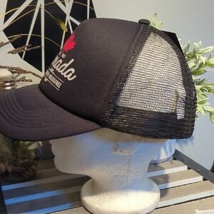 Show your love for Canada with this stylish black trucker hat. Perfect for any casual outing.