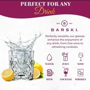 Elevate your barware collection with this brand-new set of six Barski Double Old Fashioned Crystal Whiskey Glasses. Crafted in Europe with premium lead-free crystal, these tumblers are designed to enhance the flavor, aroma, and beauty of your favorite spirits. Perfect for whiskey, bourbon, cocktails, or even water and juice, they bring elegance to every sip.
