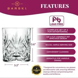 Barski, crystal glasses, whiskey glasses, old fashioned glasses, bourbon glasses, cocktail glasses, crystal tumblers, drinkware, barware, European crystal, home entertaining, whiskey set, luxury glassware, NIB, hostess gift