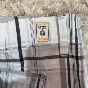 Levi's shorts with a black and white plaid pattern. SIZE 10. See picture - button missing on back pocket (cell phone pocket - Ha!). Smoke free & pet free home