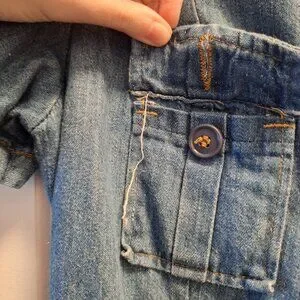 Make an offer! Landlubber zip front denim romper. In great condition - minor flyaway threads on pockets (see pics), but the buttons are sturdy. Modern size 8 is an estimate - measurements are below!