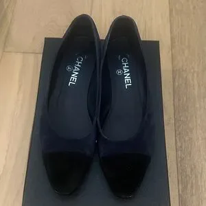 CHANEL Women's Black and Dark Blue Flats