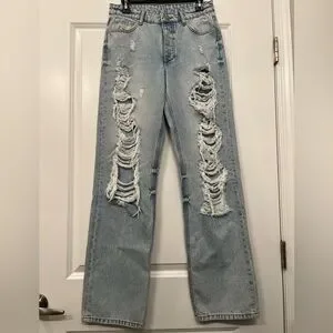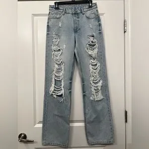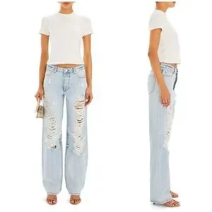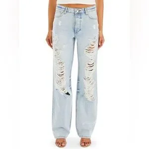 SER.O.YA Sunny Mid Rise Distressed Boyfriend Jeans Wide Leg Color Cove NWOT