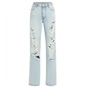 Long denim jeans cut in a washed silhouette with distressing throughout. Shown here in Cove.