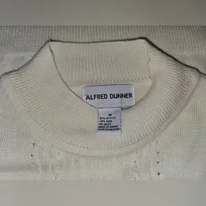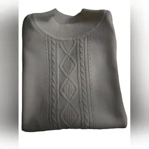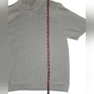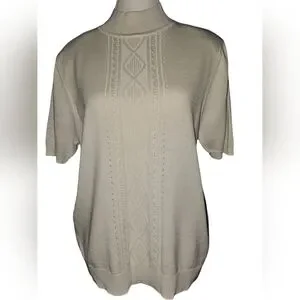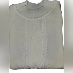 Alfred Dunner Wonens Vintage Pointelle Beaded High Neck Knit Sweater Top Sz M
