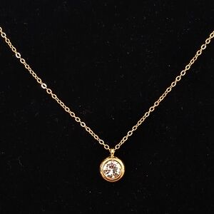 This stunning gold necklace features a sparkling Moissanite pendant, perfect for adding a touch of elegance to any outfit. The Moissanite is set in 18k gold plated over Sterling Silver. The necklace measures 16" and an additional 3" of adjustment link. Reasonable offers will be considered.