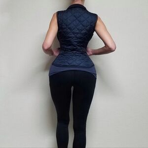 Vintage Polo Ralph Lauren Navy Blue Quilted Faux Suede Logo Crest Puffer Vest.