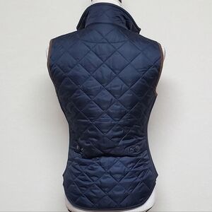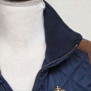 VINTAGE Polo Ralph Lauren Navy Blue Quilted Faux Suede Logo Crest Puffer Vest XS
