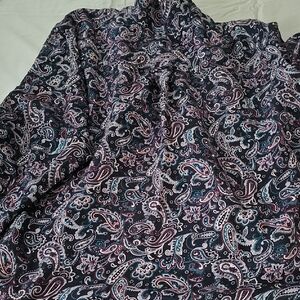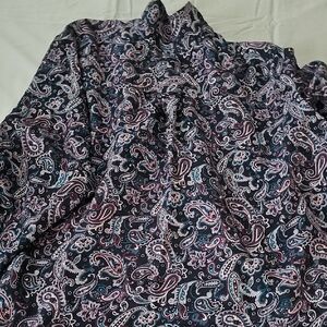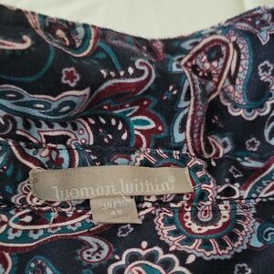 Woman Within Paisley Shirt in Purple, Teal and Pink