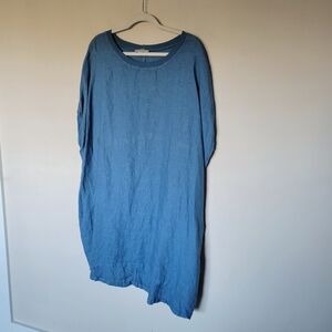 Made in Greece, this dress features an relaxed style with a knee-length hem, short sleeve design, and pullover closure for easy wearing. The solid blue color is both elegant and versatile, while the linen fabric type makes it lightweight and breathable for comfortable wear in any season.