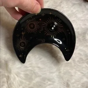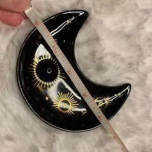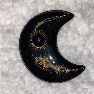 Beautiful black moon-shaped incense holder with celestial designs. Perfect for adding a mystical touch to your space.