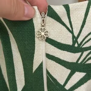 I bought this dress to wear to an event that got canceled. Never worn. It's a thicker canvas feel, V neck, darts through the waist, full skirt. Bodice is lined. It's a beautiful dress., very well-made. I just have nowhere to wear it. Please no lowball offers.