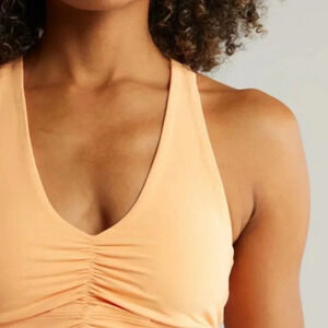 Coral Sports bra with ruched front. Racerback design. Comfortable and stylish.