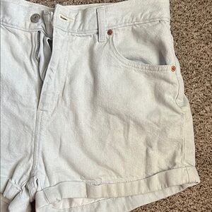 Chic Levi's shorts in a soft cream hue. Perfect for casual wear. Classic denim style. Small spot on back pocket but can be cleaned. Selling because do not fit me. Nothing wrong otherwise!