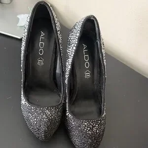 Aldo Black and Silver Embellished Heels