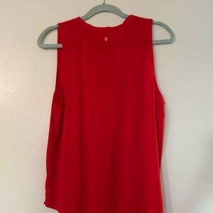 Bright red muscle tee with bold lettering. Perfect for workouts.
