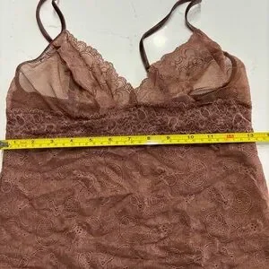 Elegant lace camisole. Features delicate lace details. Perfect for layering.