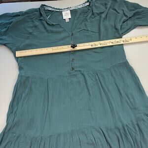 Knox Rose Dress Womens XL Sage Green Tiered Boho Tunic Pockets Gauzy Peasant