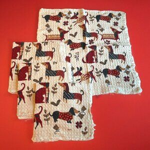 NICOLE MILLER Dog Dachshund Napkins Colorful Textured Fabric Fringe Set Of 4