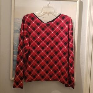 Adrienne Vittadini Christmas Sweater + Wristlet L P Women's Red/Black Plaid