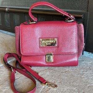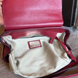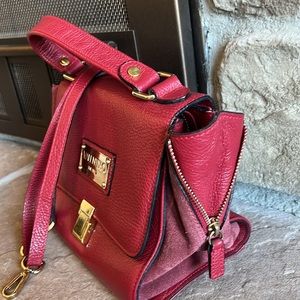Beautiful authentic leather suede modern fuchsia color - reddish pink color . ( included new white bag dust cover ) With adjustable strap for crossbag or as shoulder bag - also it’s removable strap to wear as handbag . Has a top handle . Only used inside office meeting 3 times - Preowned well loved bag very clean and sanitized. No dustbag or card .