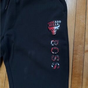 Stylish black joggers featuring the Hugo Boss patch and Chicago Bulls logo. Comfortable and perfect for casual wear. These pants have been worn and have some discoloration flaws. Please take a look at the pictures.