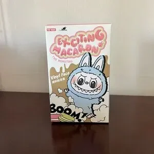 Pop Mart Exciting Macaron Vinyl Face figure in blue and white. Features a playful monster design. 100% authentic.