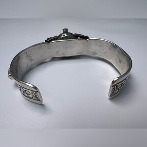Condition: Pre-loved condition. Two of the turquoise stones are cracked but do feel secure (luckily they're the 2 farthest from the face). This watch's timepiece face (Croton - Nevada - Grethen) is currently running at the time of listing.