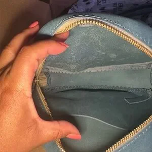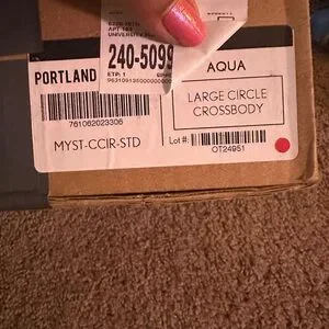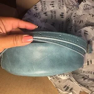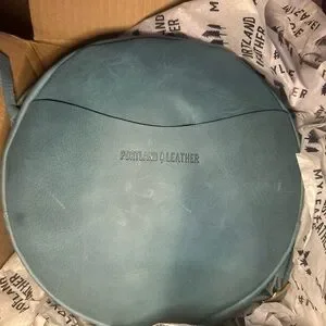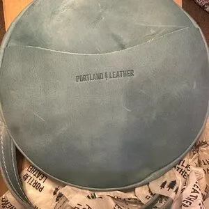 Portland Leather Large Circle Crossbody in Aqua. C-grade bag.