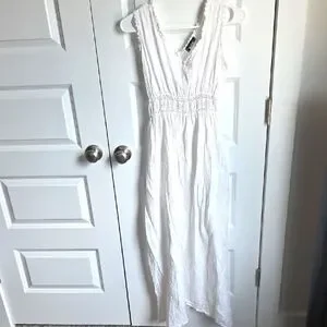 Terzo Millennio 100% Linen White Maxi Dress Women's Size Medium EUC