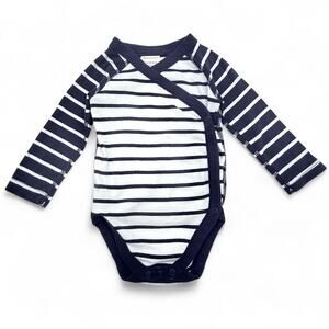 Hanna Andersson Baby Side Snap Organic Cotton Bodysuit Unisex Navy Stripe 3-6M