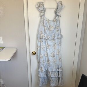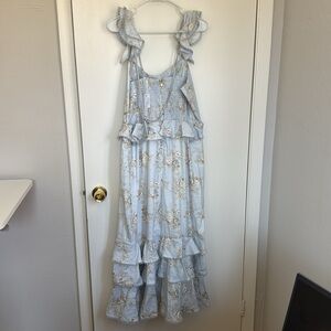 New V. Chapman Violet Linen‑Blend Midi Dress – Victorian Blue Roses – Size 16