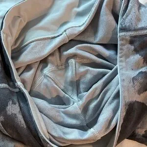 Size 10 black tie-dye/camo like gray leggings. So stretchy and lightweight in Preloved great condition with no flaws, aside on the reflective Lululemon logo on the back. This pattern is everythingggg. These are a mid/low rise, full length legging.