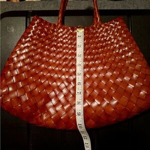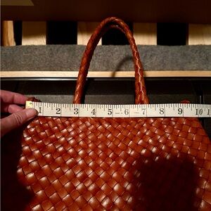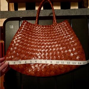 Chic woven design. Spacious and stylish. Ideal for daily use. This bag has only been used a handful of times. There is minimal (if any wear) since each one is individually hand woven and unique. Dust bag included. 100% authentic.