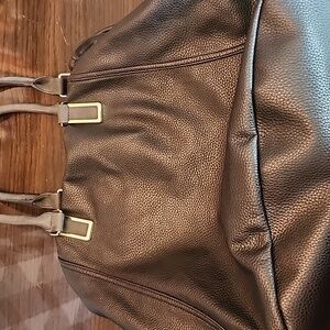 This stylish handbag features a sophisticated black and gray design, perfect for any occasion. Its elegant look is complemented by gold-tone accents, making it a versatile addition to your wardrobe. in excellent condition