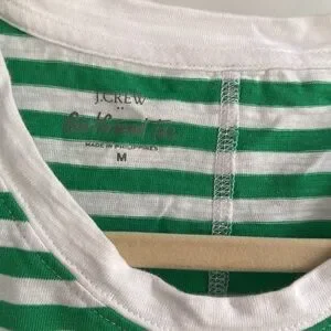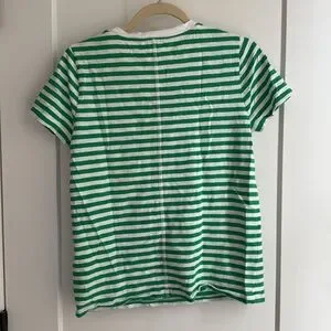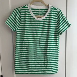 J. Crew Green and White Striped Girlfriend Tee