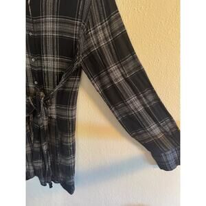 Michael Stars black plaid long sleeve shirt dress with belt. Size medium