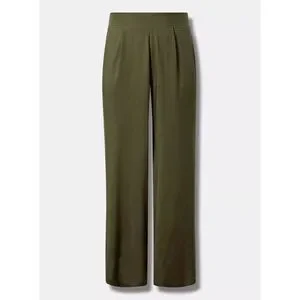 Woven challis fabric, no stretch. Wide leg green pants, size 4 Regular.