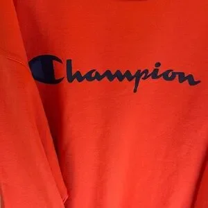 Vibrant orange crewneck with iconic Champion logo. Ideal for casual wear.