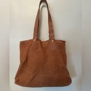 Perforated Tote Caramel Italian Mesh Leather handbag, No Label