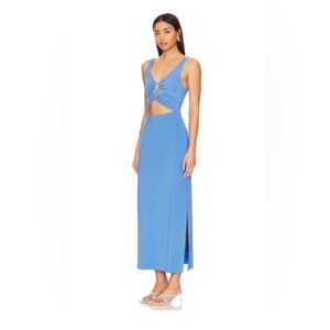 Stylish blue midi dress with a chic cutout design. Perfect for any occasion.