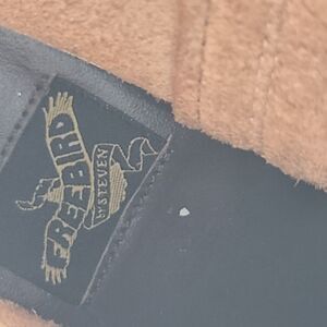 Freebird Carlito Women Sz 7 tan distressed leather Raw Rough Cut Moto Biker 2 3/8" Heeled belted buckle Boots