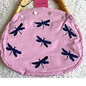 Donna Dixon Small Handbag Dragonflies Embroidered Fabric Bamboo Handle, New