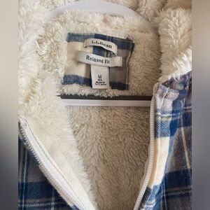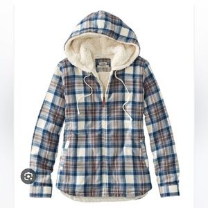 L.L. Bean Women’s Scotch Plaid Sherpa Lined Hooded Jacket Indigo/Tartan size M
